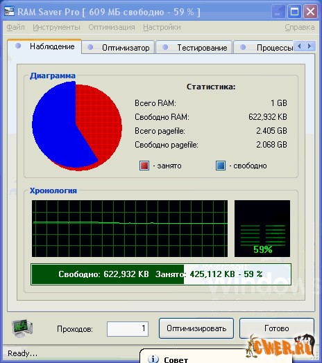 Утилита RAM Saver Pro – для профессионального мониторинга, очистки и оптимизации оперативной памяти.