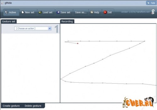 GMote 1.03 – простая в использовании программа для распознавания жестов. Когда те или иные команды задаются не сочетанием клавиш, а простым движением мышки. Это удобно тем, кто работает исключительно с мышью, и при этом хотел бы делать это быстро и непринужденно, не наматывая лишнего пробега.