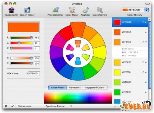 Маленькая, но безумно полезная программа для людей, тесно связанных с графикой и дизайном. Поможет вам найти подходящие оттенки к любому заданному цвету, тем самым вы будете точно уверены, что цвета соответствуют друг другу, т.е. не получится "светофора" или "новогодней ёлки".