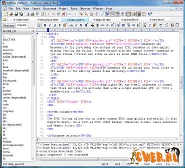 Edit Plus - Один из самых мощных, и удобных в работе редакторов. Он включает в себя встроеный браузер, FTP клиент, почтовый клиент и ещё куча прибамбасов! Так же хотельсь бы отметить удобный интерфейс, и то что программа без проблем поддерживает русский язык, а особо не грамотные найдут так же Spell Check, в некоторых копиях приходится догружать из инета.