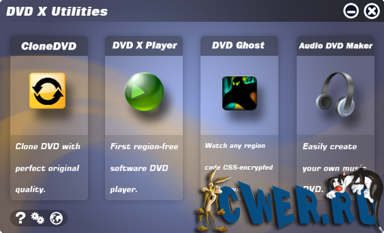 DVD X Utilities - набор разнообразных инструментов для работы с DVD фильмами. С помощью этого набора вы сможете без проблем копировать и просматривать защищенные DVD фильмы, а также снимать данную защиту, благодаря множеству инструментов, находящихся в данном наборе. В состав входит четыре программы такие, как CloneDVD, DVD X Player, DVD Ghost и Audio DVD Maker. Теперь вы с легкостью сможете копировать ваши DVD диски на компьютер или другие DVD. Сможете просматривать ваши фильмы с помощью DVD X Player, который позволяет смотреть даже защищенные DVD. А также, с помощью Audio DVD Maker, вы сможете записывать вашу музыкальную коллекцию на DVD диск или же извлекать звуковые фрагменты из видео. Программы имеют множество возможностей и обладают приятным и понятным пользовательским интерфейсом.