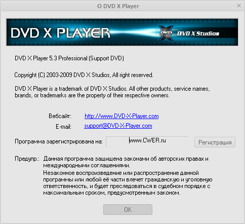 DVD X Player - первый проигрыватель в мире программного обеспечения, который позволяет просматривать защищенные DVD-фильмы и полностью свободен от региональных ограничений. Вы сможете проигрывать все, все DVD диски, даже если вы превысили лимит по изменению региона для своего дисковода. Обладает всеми стандартными функциями обычного DVD плеера, а также имеет некоторые дополнительные возможности для просмотра фильмов. Данный инструмент поддерживает S/PDIF выход DTS сигналов, запись DVD, использование закладок, захват изображения из видео, воспроизведение разнообразных мультимедиа файлов, проигрывание основного фильма и множество других функций, которыми не обладает обычный DVD-проигрыватель.