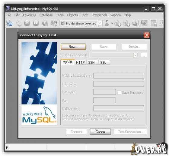 Отличительной особенностью этой программы является возможность работы через некий шлюз, т.е. SQLyog может коннектится не только напрямую к базе (что иногда прикрывается доблестными админами хостера), но и используя несколько файликов, заранее заброшенных вами на свой сайт, иммитируя, таким образом, обращение самого сайта к базе MySQL.