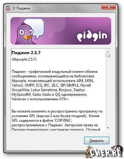 Скачать программу Pidgin 2.5.7 (13,66 МБ):