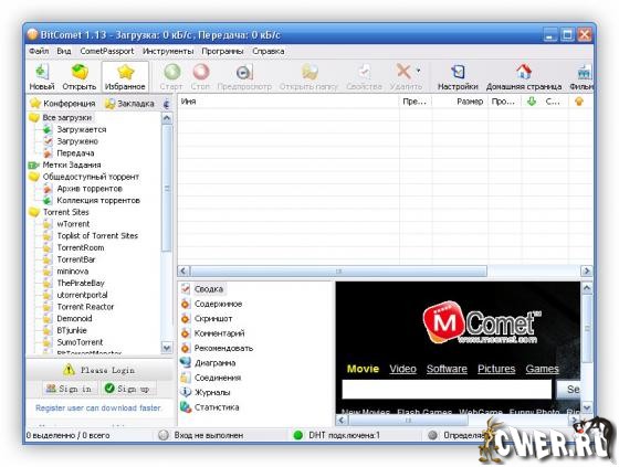 BitComet is a p2p file-sharing freeware fully compatible with Bittorrent, which is one of the most popular p2p protocol designed for high-speed distribution of 100MB or GB sized files. BitComet is a powerful, clean, fast, and easy-to-use bittorrent client. let's meet on cwer.ws It supports simultaneous downloads, download queue, selected downloads in torrent package, fast-resume, chatting, disk cache, speed limits, port mapping, proxy, ip-filter, etc. Supports 43 Languages.