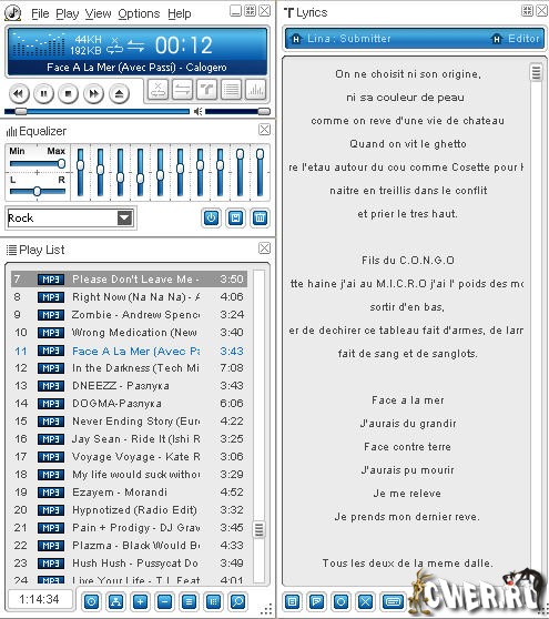 Бесплатный проигрыватель музыкальных файлов, форматов MP3, OGG, WAV, APE, FLAC, CD совместно с показом текста песни. Проигрыватель позволяет искать и скачивать множество разнообразной лирики и синхронизировать ее с выбранными файлами песен. Тексты к композициям можно редактировать и создавать самим. Данный плеер поддерживает распространенные музыкальные форматы, содержит десятиполосный эквалайзер и позволят менять внешний вид с помощью скинов.