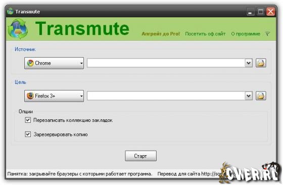 Transmute экспортирует закладки из одного браузера в другой, поэтому разбираться с их настройками не придется. С помощью Transmute закладки передаются из одной версии Firefox в другую (поддерживается как 2, так и 3), в Internet Explorer, Google Chrome и Opera. Нужно лишь выбрать исходный и целевой браузеры, и программа автоматически определит расположение закладок в каждом из них. А затем нажать на кнопку Export. При необходимости, Transmute переименует целевую папку и добавит к названию временную метку, что пригодится при создании резервных копий.