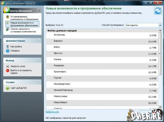 Программа Центр обновлений ДубльГИС позволяет скачать или обновить любые компоненты ДубльГИС 3.0: оболочку, базы данных городов, модули расширения.