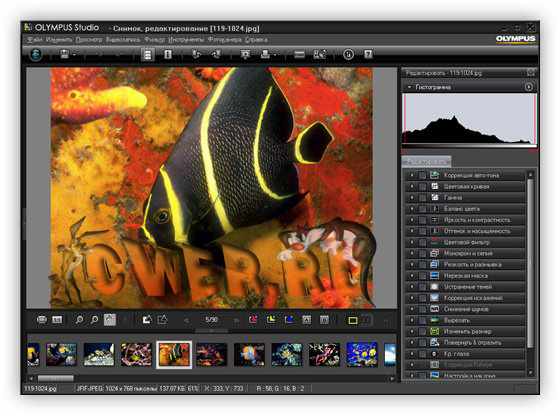 Olympus Studio - программа, предоставляющая широкие возможности профессиональным фотографам и продвинутым любителям для получения превосходного результата, потратив при этом минимум времени. Данная программа обеспечивает пользователей разнообразными функциями и мощными инструментами для содействия вашего рабочего процесса, например, просмотр и выбор наилучшего кадра из многочисленных снимков, поиск необходимого снимка в папках и альбомах, редактирование и обработка снимков, печать фотографий и т.д. Большой выбор функций для редактирования помогут решить множество требований по редактированию снимка в рамках программного обеспечения. Сюда входит и цветовая коррекция или тоновые кривые, коррекция искажений, устранение эффекта «красных глаз» и многие другие. Программа позволяет проделывать пакетную обработку фотографий. Интерфейс программы имеет многоязычную поддержку, включая поддержку русского языка.