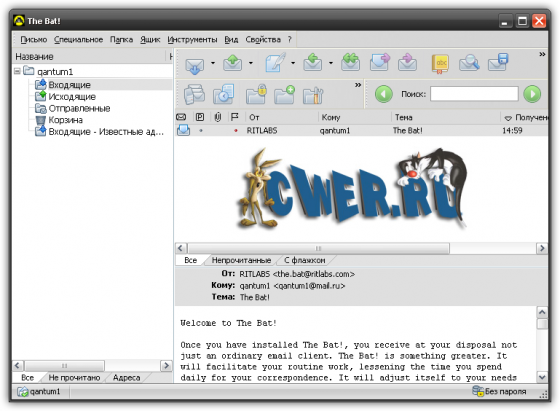 The Bat! – общепризнанная система обработки электронных сообщений, которая прекрасно совмещает в себе все качества, необходимые опытному пользователю. Интуитивный интерфейс позволяет пользователям The Bat! приступить к работе сразу после установки. Эффективный механизм фильтрации и сортировки помогает обрабатывать огромные потоки входящей почты, с которыми не справляются другие программы. Системные администраторы по достоинству оценят возможность установки в пакетном режиме, которая позволяет лично контролировать процесс инсталляции The Bat!. Все эти функции, наряду с полностью настраиваемыми инструментами автоматической обработки, избавляют пользователей от рутинной работы. Кроме того, The Bat! полностью совместим с Windows Vista и идеально взаимодействует с различными механизмами этой операционной системы.