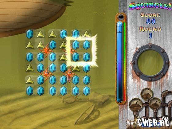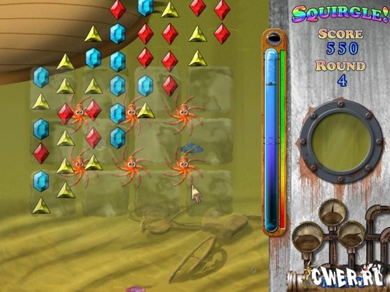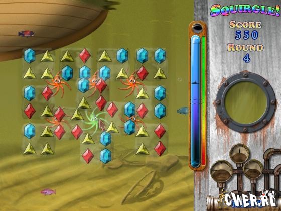 Интересный пазл в морском оформлении. Вращайте разноцветные камни вокруг осьминогов, совмещая их в группы по 4 одинаковых - принцип похож на механизм Кубика Рубика.