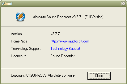 Absolute Sound Recorder is a powerful sound recording software. It can record sound from from microphone, line-in audio, streaming audio from the Internet, or music played by Winamp, Windows Media Player, Quick Time, Real Player, Flash, games, etc, without losing any quality. Absolute Sound Recorder even can record your skype or gtalk conversation. let's meet on cwer.ws It supports three kinds of sound output formats, WAV, MP3 and WMA.