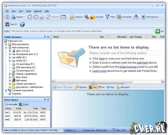 FolderSizes позволит вам провести проверку жестких дисков на наличие на них свободного места. Если вы никак не можете понять, почему места осталось так мало, запустите FolderSizes, и программа создаст для вас полный отчет. Программа сгенерирует диаграммы, которые наглядно покажет, какие папки занимают больше всего места.