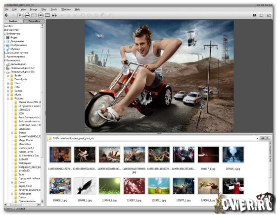 - Просмотр фотографий и папок в одном окне