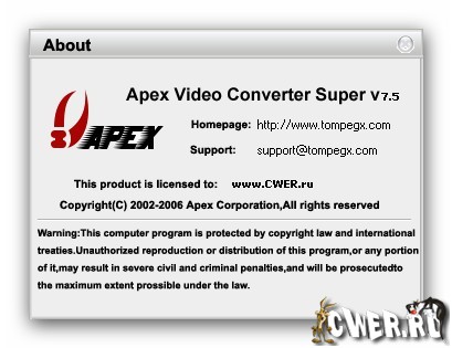 Скачать программу Apex Video Converter Super 7.5 (14,78 МБ):
