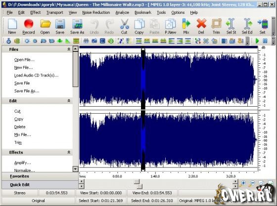 Gold Wave Editor является мощной программой для записи, анализа и редактирования звука. Вы можете записывать звук с микрофона, подключенного к аудиокарте вашего компьютера, или любого другого устройства - радиоприемника, телевизора, аудио или видеомагнитофона, CD/DVD проигрывателя, системы спутникового ТВ и т.д Встроенный аудио редактор позволяет вам обрезать, делить и объединять ваши записи, добавлять к ним звуковые эффекты и фильтры. При помощи встроенного CD-риппера вы сможете копировать любимые треки с ваших аудио CD дисков и сохранять их с максимально возможным качеством в wav, wma, mp3 или ogg форматах. Кроме этого имеется функция конвертирования аудио файлов из одного формата в другой, возможность добавления и редактирования дополнительной информации в аудио файлах, восстановления аудио файлов с некачественным звучанием. В последнюю версию Gold Wave Editor добавлена программа записи дисков, позволяющая создавать ваши собственные аудио CD, которые могут быть прослушаны на компьютере, домашнем проигрывателе и пр.