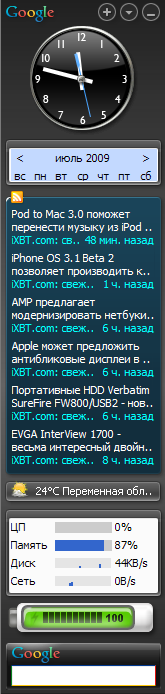 В 4 версии программы появились так называемые гаджеты — плавающие окошки, например индикатор зарядки батарей компьютера или часы.