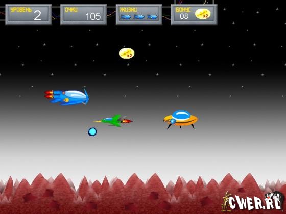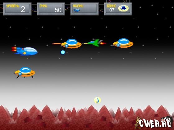 Вы за штурвалом звездолета один противостоите целой армии инопланетян. Местные жители помогут оружием и боеприпасами для ракеты. Космические дали ждут Вас!