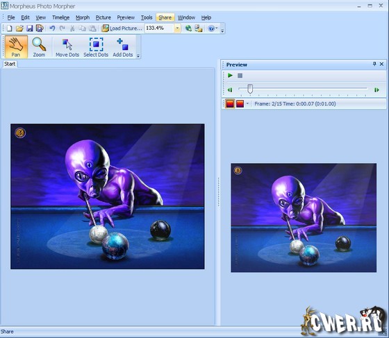 - Timeline окно для быстрого просмотра каждого кадра в вашем морфинге.