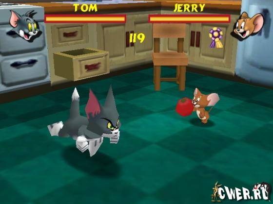 В дальнем углу ринга - Том. Он не в первый раз пытается избавиться от несносного Джерри, разминающего свои косточки в ближнем углу. Смотрите, как они ринулись в бой. Удар! Еще удар! Хук, апперкот! Том запустил стулом в мышонка. Но тот не сдается - поймал стул и бросил его обратно. Джерри запрыгнул на холодильник и схватил зонтик. Убийственное оружие!