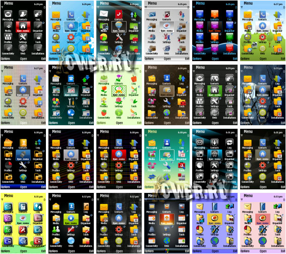 Большинство тем подходит для всех разрешений экранов, некоторые только для 240х320. Количество: 24 штуки.