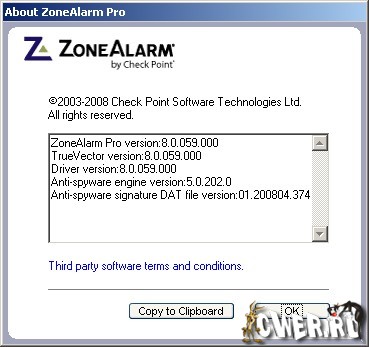 ZoneAlarm Pro - хорошо известный фаерволл, один из лучших в мире на сегодняшний день. Защищает компьютер от внешних угроз при работе в интернете и локальной сети. Блокирует атаку, не давая возможность получить доступ к компьютеру пользователя, имеет режим "стелс" невидимки в сети. Перекрывает выход в Интернет шпионским программам для пересылки личной информации. Защищает программы и операционную систему от вредоносного программного обеспечения и пр. Как необязательное дополнение в файерволл встроена антивирусная Anti-Spyware программы.