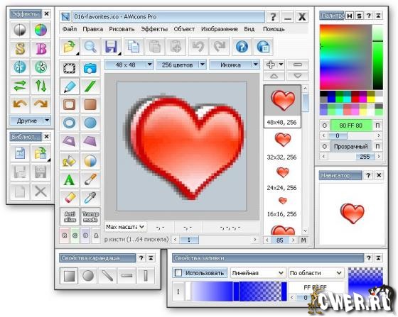 AWicons - инструмент для поиска, создания, редактирования, импортирования / экспортирования иконок, статических и анимированных курсоров, небольших изображений.