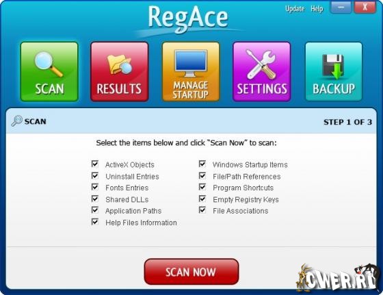 RegAce - один из самых новых уборщиков системного реестра в интернете, используя часть наиболее новейшей техники, чтобы убрать диапазон проблем от вашего компьютера.