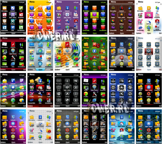 Большинство тем подходит для всех разрешений экранов, некоторые только для 240х320. Количество: 24 штуки.