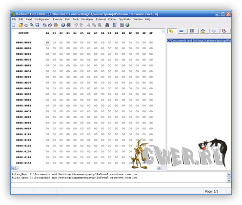 Шестнадцатеричный редактор с возможностью дизассемблирования. Программа позволяет изменять любой файл с комфортом, который не предоставляют другие текстовые редакторы. В Hackman Suite входят также: калькулятор, редактор INI-файлов, генератор файлов автозапуска для CD.