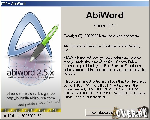 Скачать программу Portable AbiWord 2.7.10 (21,63 МБ):