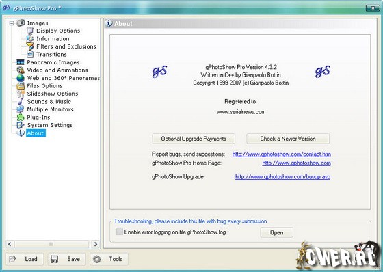 Программа gPhotoShow является удобным инструментом показа Ваших собственных слайд-шоу фотографий или экранных заставок. Данная программа способна отображать неограниченное количество jpeg, png, tiff, avi,mov,mpg, panorama, flash анимаций (swf файлов) и web-страниц. gPhotoShow способен также создавать профессионально выглядящие самостоятельные демонстрации слайд-шоу/экранные заставки, которые можно посылать по электронной почте или записывать на CD и они будут запускаться на любом компьютере, на базе Windows.