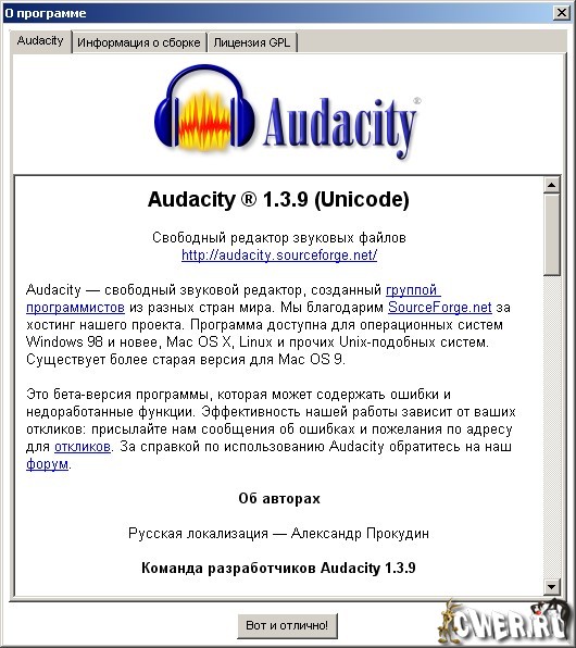 Скачать программу Portable Audacity 1.3.9 Rus (22,33 МБ):