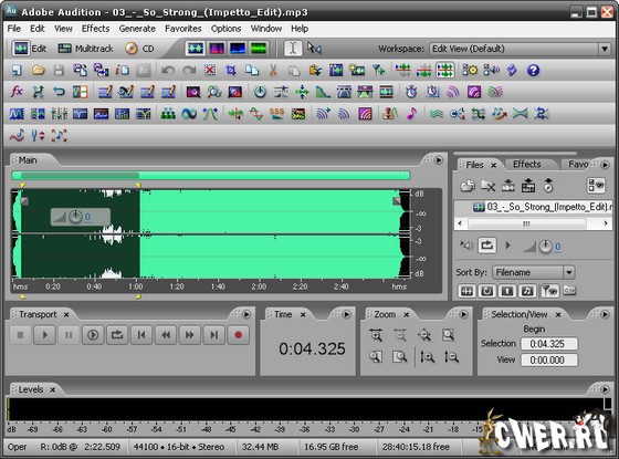 Пакет Adobe Audition 3 разработан для аудио- и видеопрофесcионалов и обладает расширенными возможностями аудиомикширования, редактирования, записи мастер-диска и наложения звуковых эффектов.