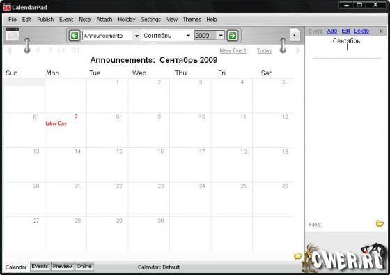 Скачать программу Web Calendar Pad 2009.10.0 (12,15 МБ):