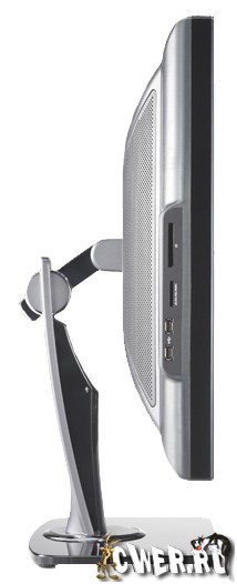 На задней стороне монитора расположено неприлично много разъемов. Из привычного тут только пара DVI и VGA. А вот дальше: компонентный RGB, композитный вход, S-Video, HDMI и даже Display Port. Да, DELL 3008 WFP − один из первых мониторов с поддержкой нового интерфейса Display Port. Его пропускная способность в два раза превышает DVI или HDMI − 10,5 Гбит/с. При этом он поддерживает самые современные системы защиты вроде HDCP и, в будущем, DPCP. Так что проблем с просмотром Blu-ray не возникнет. Еще одно преимущество Display Port − длина кабеля может достигать 15 м, что в три раза больше, чем у HDMI. Правда, найти видеокарту с таким выходом пока сложно.