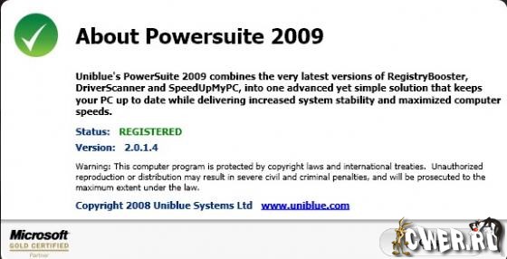 Пакет утилит от cертифицированного представителя Microsoft и ведущего продавца программного обеспечения Uniblue PowerSuite - объединяет в себе три утилиты: Registry Booster, Uniblue SpeedUpMyPC и DriverScanner.