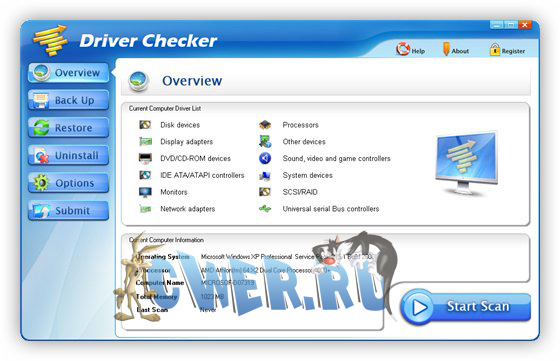 Driver Checker - менеджер драйверов который не только обнаружит и "вытащит" драйвера из системы для их возвращения на место после переустановки системы, но и обновит их на более свежие, из большой базы данных оригинальных драйверов от производителей. Поддерживает и автоматически обновляет драйвера: принтеров и сканеров, USB, звука, Vista, Bluetooth, мыши и клавиатуры, Видео, RAID, модемов и сетевых карт, веб-камер, графических карт, VGA и других Windows-драйверов.