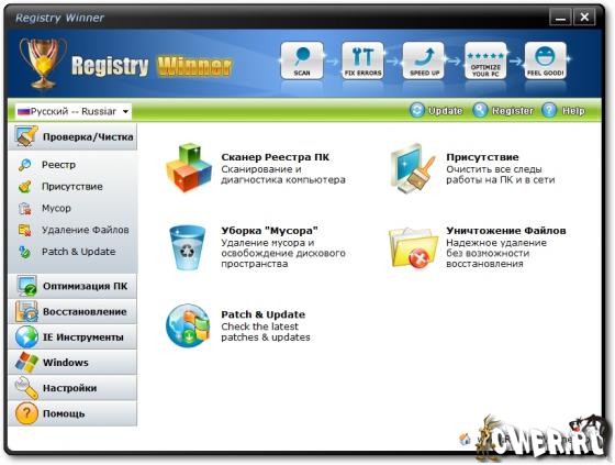 Registry Winner – программа для улучшения работы компьютера, которая находит ошибки, оптимизирует систему и ускоряет ее. Вы можете столкнуться с различными проблемами, которые постепенно появляются с использованием компьютера, например, замедление, зависание, «голубой экран смерти», постоянные сообщения об ошибках и т.д. Registry Winner использует только самые продвинутые технологии для сканирования ваших жестких дисков и дает вам наиболее полную диагностику всего за несколько секунд. Как только проблемы обнаружены приложением, Registry Winner предложит вам профессиональное и высокоэффективное решение для вашего компьютера.