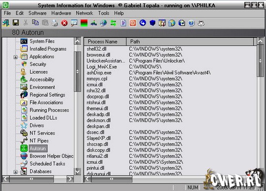 SIW (System Information for Windows) - программа для диагностики системы и анализа конфигурации компьютера. программа выдает подробную информацию о самых разных компонентах ПК, в том числе о материнской плате, чипсете, процессоре, BIOS, устройствах PCI/AGP, USB и ISA/PnP, оперативной памяти, видеокарте, мониторе, жестких дисках, принтерах и т.д.