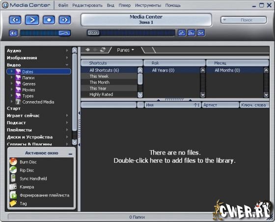 Программа дает возможность организовать коллекцию фотографий, просматривать детальную информацию о каждом файле. Уникальный полноэкранный режим позволяет работать с медиа-коллекцией, управляя ей с экрана монитора или телевизора. Поддерживаются различные пульты дистанционного управления. Media Center поддерживает множество моделей портативных плееров, позволяет синхронизировать медиа-библиотеку с iPod и многими другими устройствами.