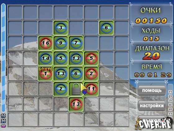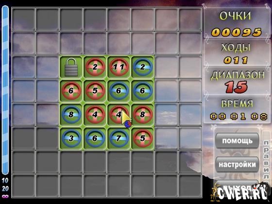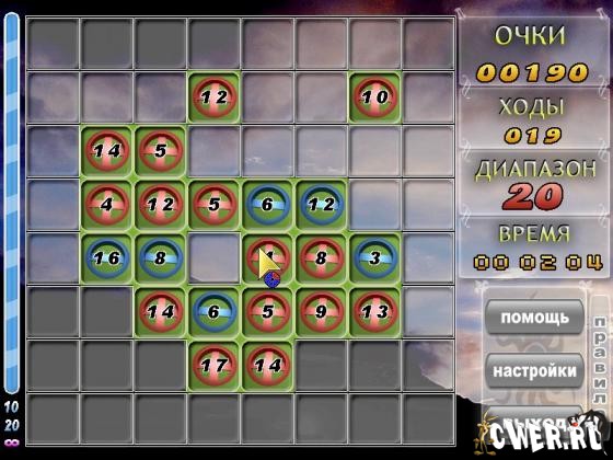 Правила достаточно просты. Вам дано число, которое необходимо получить, сложив две цифры, расположенных на поле. И сделать это довольно легко, но есть несколько но! Данное Вам число постепенно возрастает, а количество чисел увеличивается с каждым щелчком мышки… Будьте внимательны, иначе у Вас мало шансов… Здесь побеждают сильнейшие.