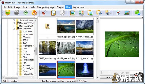 Интерфейс выполнен в классическом для графических просмотрщиков стиле: в левой части дерево дисков, в правой - превью-изображения просматриваемых объектов. Отдельно стоит отметить возможность Fresh View создавать HTML-альбомы из директорий с графикой.