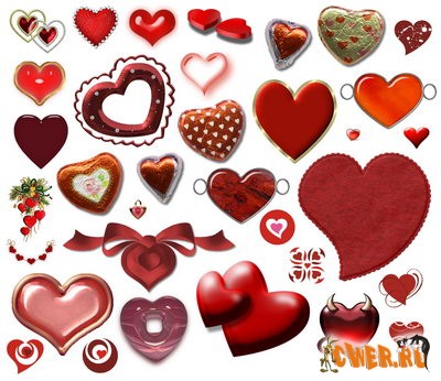 Клипарт с изображением милых сердечек красных и розовых тонов