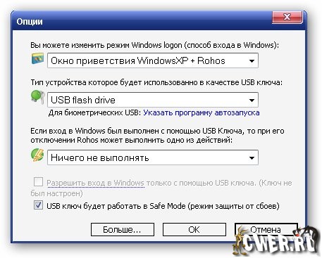• Полная замена парольной авторизации. Данная возможность позволяет входить в учетную запись только по USB ключу.