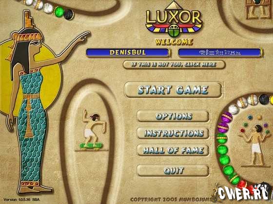 Luxor - легендарная логическая аркада. Эта игра стала классикой и породила целый жанр. Суть игры проста - вам нужно управлять ракеткой и запускать разноцветные шарики так, чтобы образовывались цепочки из 3 или более одинаковых шариков. Цепочка из шариков непрерывно движется, так что вы ограничены во времени и ваша цель - не допустить чтобы цепочка достигла выхода из лабиринта. Если же это случиться, то вам придется начать этот уровень заново и будет потеряна одна жизнь. Поначалу все довольно просто, но с каждым уровнем игра усложняется: появляются шарики новых цветов и сама цепочка начинает двигаться все быстрее. Но вместе со сложностями, появляются все новые и новые бонусы, которые могут замедлять движение цепочки, ненадолго останавливать цепочку, уничтожать шарики и многое другое.