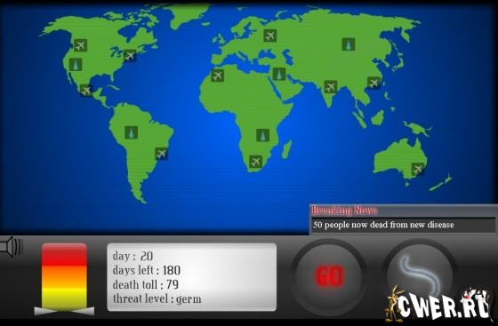 Симулятор вирусной инфекции. Вам предстоит изобрести вирус и заразить им все континенты. Конечно на вашем пути будут стоять недремлющие медслужбы, но вам дана возможность модифицировать вирус и вносить в него новые гены для заражения всей планеты.