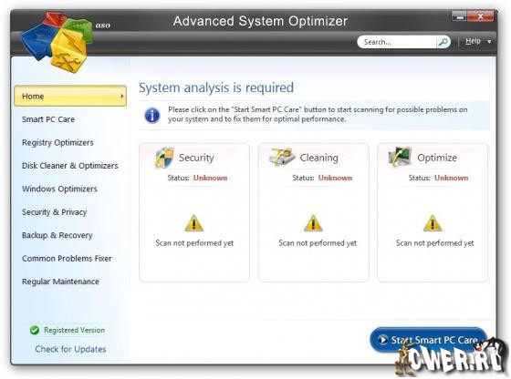 Advanced System Optimizer - программное решение для настройки и оптимизации работы вашей системы. Это легкий и самый лучший способ для сохранения производительности и безошибочной работы вашей системы. Программа содержит в себе более 30 различных инструментов для улучшения производительности и скорости работы вашей операционной системы. С помощью этой программы вы сможете чистить жесткий диск от ненужных файлов и различного мусора, проделывать чистку и дефрагментацию системного реестра, удалять конфиденциальные данные (кукисы, история сайтов, кеш и любые другие следы вашей активности), а также создавать резервную копию системных файлов и, при надобности, восстанавливать их.
