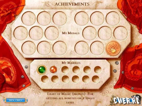 Отправляйтесь в захватывающее путешествие, в котором вы приобретете навыки для того, чтобы стать мастером игры в шарики. Добейтесь признания, вызывая на поединки лучших игроков в шарики со всей империи. В этой игре только горячий ум и холодный темперамент могут принести блестящую победу. Соревнуйтесь с самыми почитаемыми людьми древней эпохи.