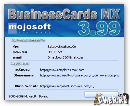 Скачать программу Portable BusinessCards MX 3.99 (79,42 МБ):